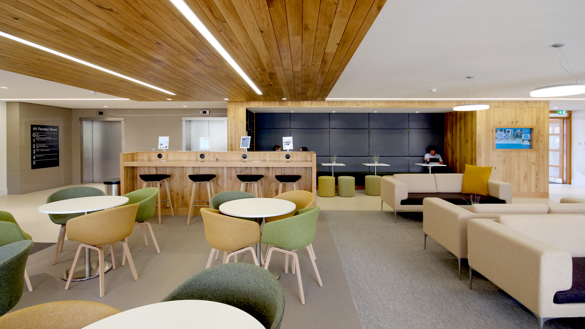 Work was completed in summer 2014 on a major refit of 401 Faraday Street, Birchwood Park for MEPC. The Fuse Manchester studio was tasked with the transformation of the ground floor including a new social and collaborative working hub with a new café, a new reception and the creation of a stronger link to the adjacent Chadwick House.