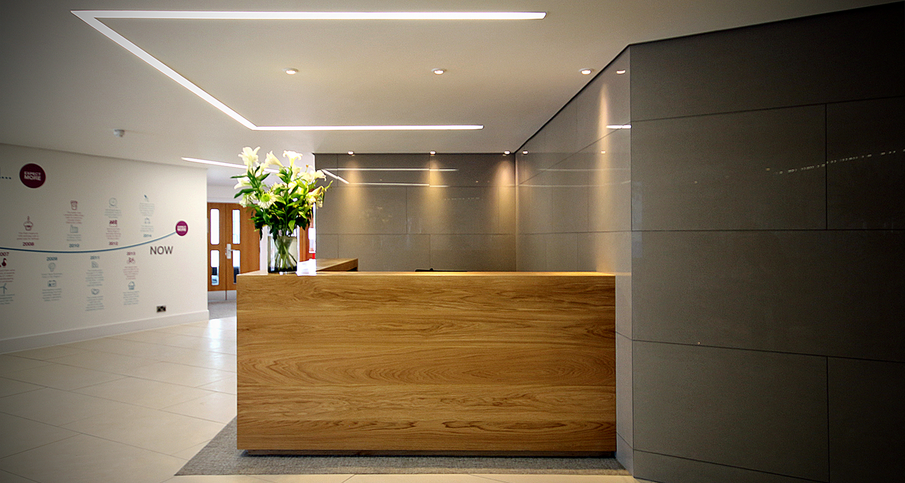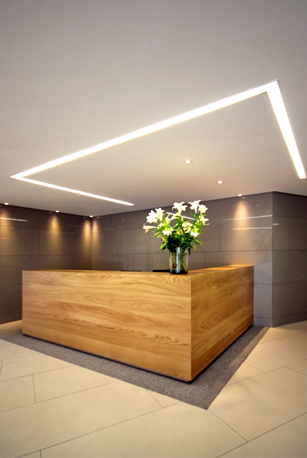 By contrast, the reception area (above and right) has been given a very sleek new look with clean lines and the minimum of clutter and complexity. Here, linear lighting recessed into the ceilings to provide a subtle map to help visitors to understand the layout of the building. A further 2,000sqft was similarly transformed at first floor level including the reception area and meeting rooms. Fuse interior designer Nathan Curtis ran the project with contributions from Andrew Thurman, David Riall and Steven Bell. Good job guys.
