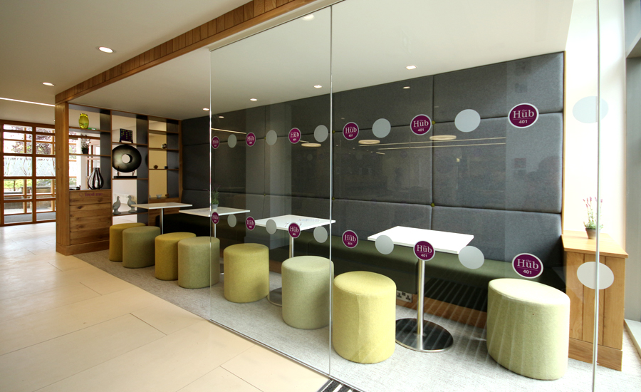 The ground floor for which Fuse was responsible extends to over 4,000sqft and this was enlarged further with the addition of a 900sqft ‘year round’, heated cafe terrace (below) complete with retractable cover. Inside, the cafe servery was remodelled and variety of seating areas introduced from relaxed lounge seating through to semi-private booth spaces and even an Ipad dock station for that quick check of the email inbox (or the football results)
