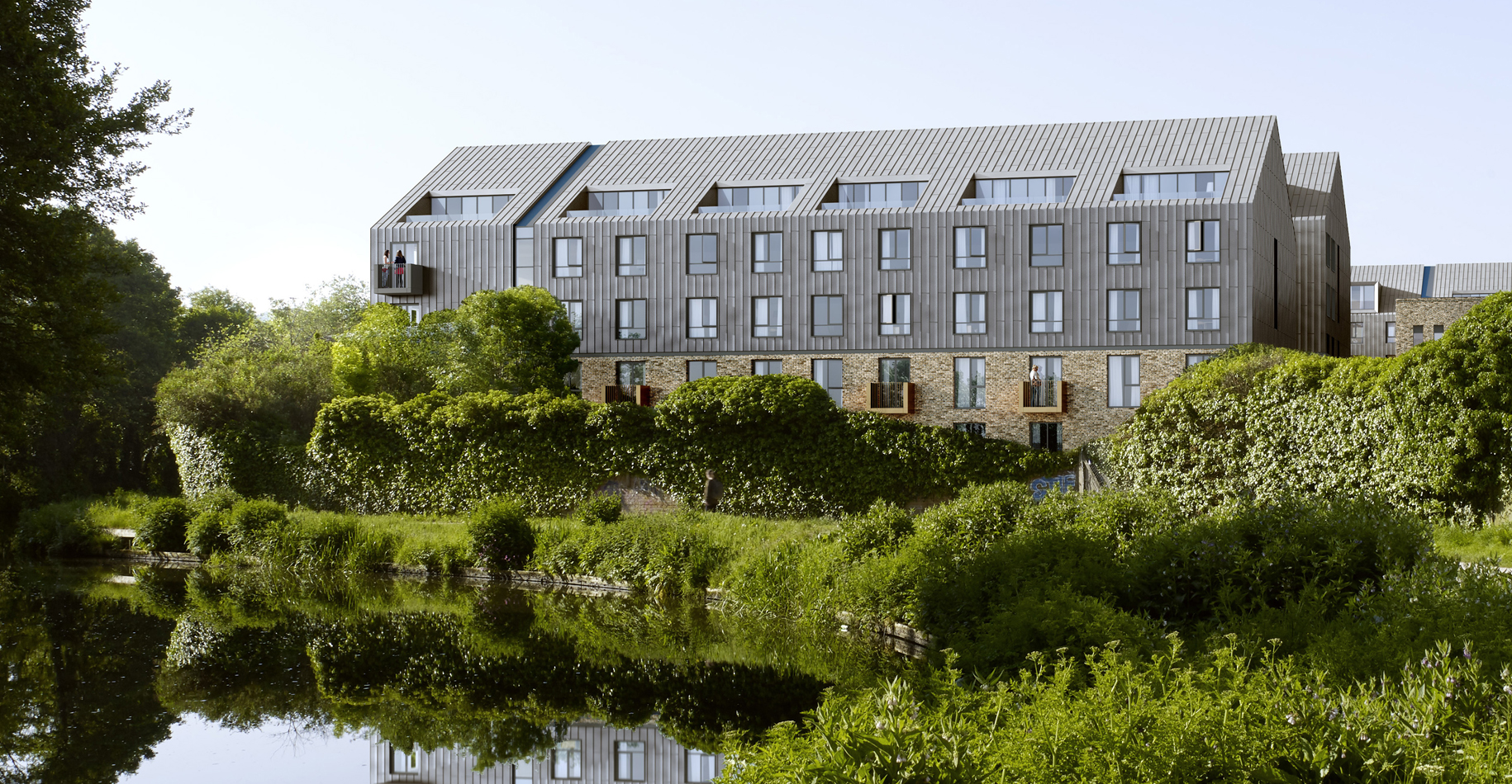 The striking pitch roof design was developed in response to the local context along with a desire for roof level dormers. The dormers allow the accommodation to be maximised, whilst adding architectural interest to the roof scape. The dormer rooms stop short at the Riverside elevation so that the overall height impact is reduced and the pure pitched roof form is prominent to the water’s edge.